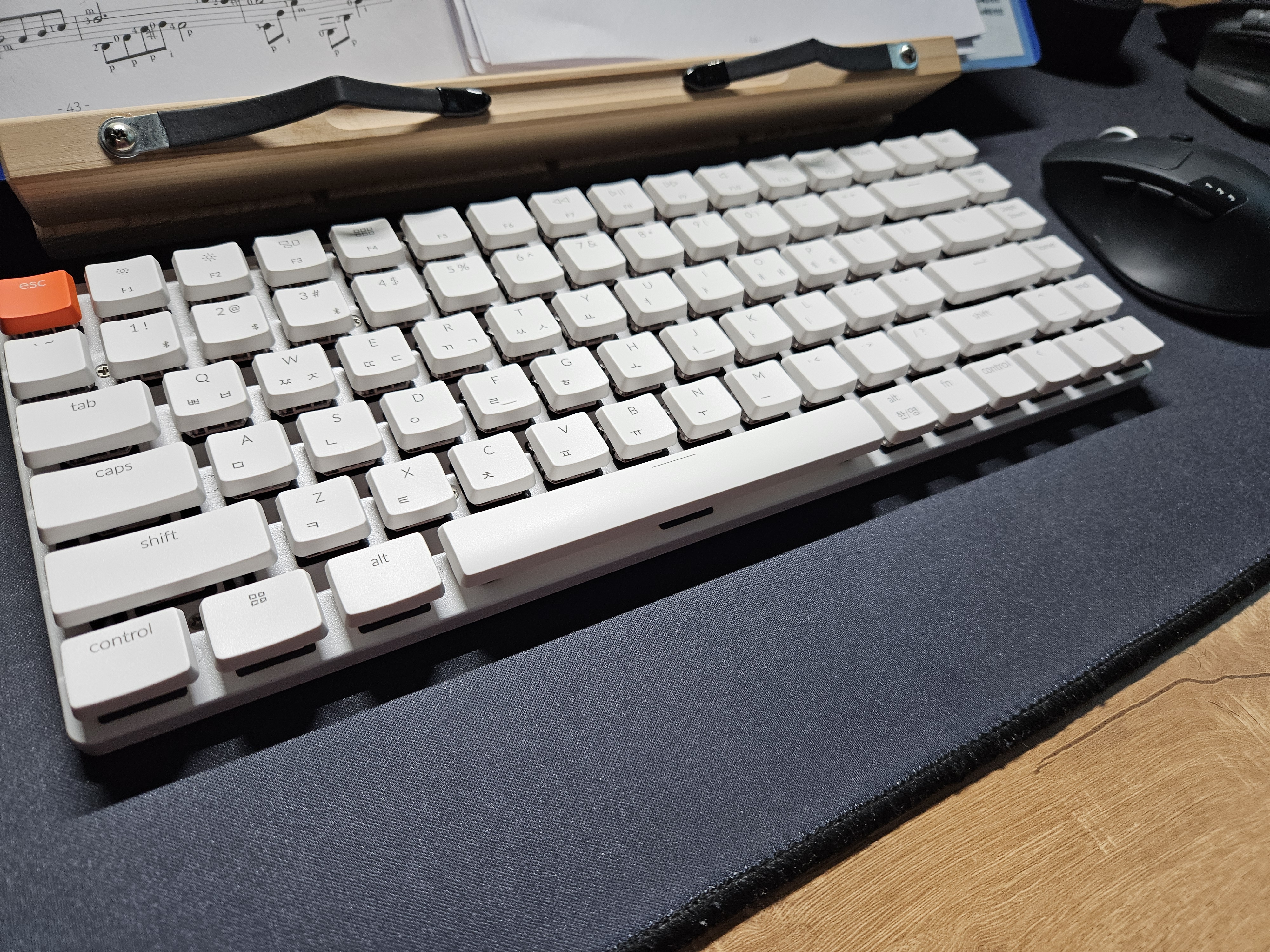 우선, 크기가 적당하고, 텐키리스라서 공간면에서 유리하다. insert 키도 있고, 직전까지 사용했던 로지텍 Mx Keys Mini와 키 배열이 유사하다. 특히, ctrl, win, alt, space의 길이, 한/영, fn, ctrl. 엔터, 양쪽 shift 키 등의 배열이 상이하면 적응하기 매우 어려운데, Mx Keys Mini의 사용자는 적응이 매우 빠를 것이다.