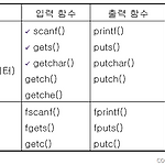 ※ 표준 입력 함수 사용시, 주의할 점 체크 표시되어 있는 scanf(), gets(), getchar() 함수는 데이터 입력 시에 입력 버퍼를 이용합니다. 즉, Enter 키를 누르면, 그때서야 비로서 지금까지 키보드로 친 내용이 Enter 키도 포함하여 한꺼번에 버퍼로 들어가게 됩니다. 그러나, getch(), getche() 함수는 입력 버퍼를 이용하지 않고, 키보드로 친 문자가 곧바로 CPU로 넘어 갑니다. 이때, getch() 함수는 입력한 내용이 모니터에 표시되지 않습니다. 반면, getche()는 입력한 내용이 모니터에 표시되지요.. 또한, fscanf(), fgets(), fprintf(), fputs()는 앞에 ‘f’가 붙어 있어서, 파일 입출력 함수인지 바로 알 수 있습니다. 그러나, ..