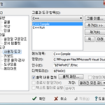 사용자 도구 구성 방법 환경변수 등록 Visual C++ 설치시 환경변수 등록에 체크한 후 설치하거나, 별도로 아래와 같이 환경 변수를 등록해 주어야 한다. Path 환경 변수 C:\Program Files\Microsoft Visual Studio\VC98\Bin; C:\Program Files\Microsoft Visual Studio\Common\MSDev98\Bin; INCLUDE 환경 변수 C:\Program Files\Microsoft Visual Studio\VC98\Include; LIB 환경 변수 C:\Program Files\Microsoft Visual Studio\VC98\Lib; 위와 같이 3개의 환경 변수를 설정한 다음에는 EditPlus로 가서 "도구" > "사용자 도구 구성"..