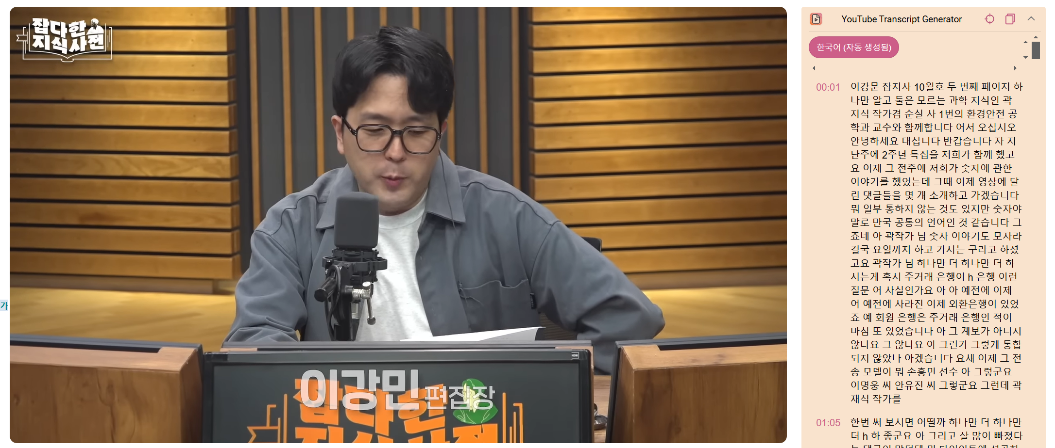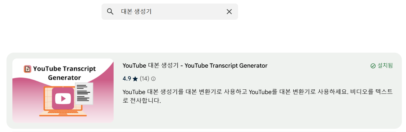 유튜브 영상에서 음성의 내용을 텍스트로 빠르게 확인해야 하는 경우가 있다. 이럴 때 활용할 수 있는 추천 프로그램이다. 크롬 웹 스토어에서 "대본 생성기"를 검색하면 된다.