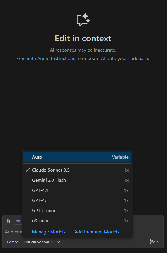 현재 Visual Code에서는 여러 Vibe Coding 툴을 제공하고 있다.